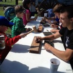 - Stamping leather at Nash Farm.