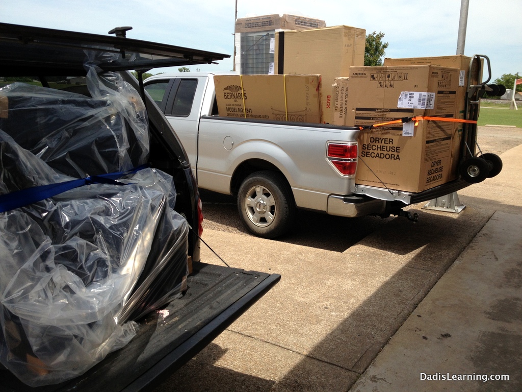 A truckload of appliances and furniture…fridge, range, washer, dryer, beds, nightstands, dresser, dinette, couch and sofa all brand new and all in two F-150 trucks.
