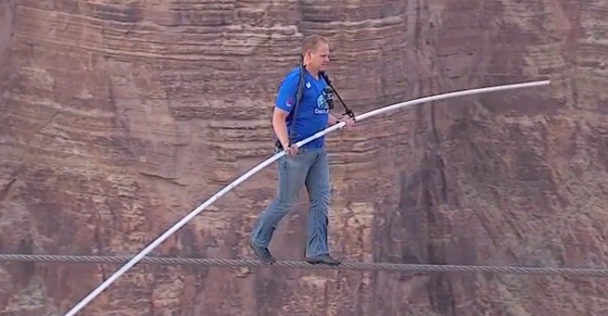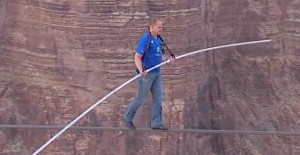 Nik’s stunt involved walking on a 2 inch thick cable for about a quarter mile. He walked and balanced himself 1,500 feet above the Little Colorado River Gorge. That’s near the Grand Canyon. Oh, he did the stunt without a safety harness and winds whipping through the gorge around 20-30 miles per hour.