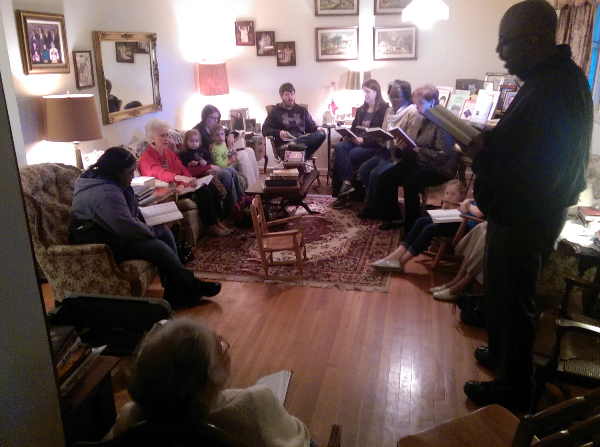 Our time of singing hymns last night was one of the best we have ever had. We had a group that filled her living room. This sweet woman had a list of hymns ready that she wanted to sing, so we all knew she had been looking forward to this time. Our group was made up of all ages from the 89 year-old we were visiting all the way down to a pair of two year-old children. I believe everyone who was in attendance had their day brightened just as much as the woman we went to visit.