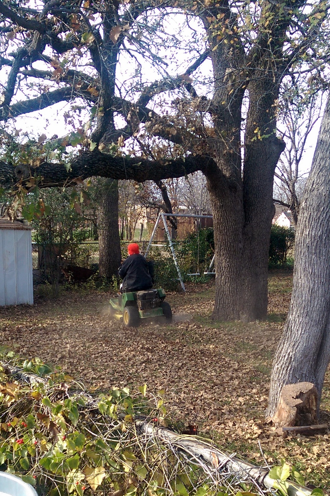 I know I have written about our 90+ year old neighbor before, but she continues to impress! Earlier this week I was walking over to pick up our daughter from school and I saw our neighbor out on her John Deere mower, chopping up her leaves. It was a cool, but pleasant afternoon and she was out tidying up her lawn. How many 90+ year olds do you know who still mow their own lawns?