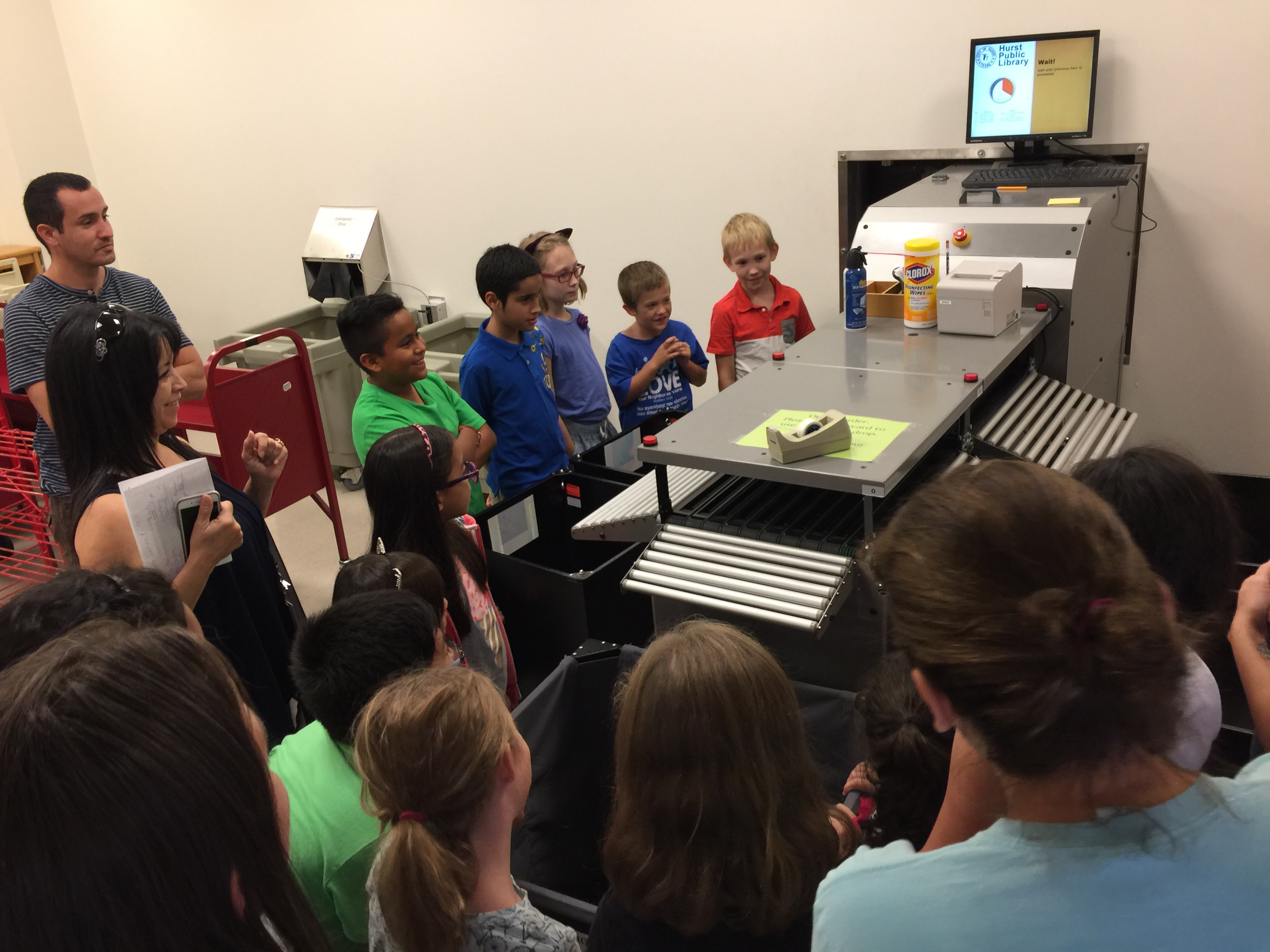Who knew? The library drop box has an automated sorter that uses conveyor belts and rollers to sort materials to various carts to be returned to the shelves.